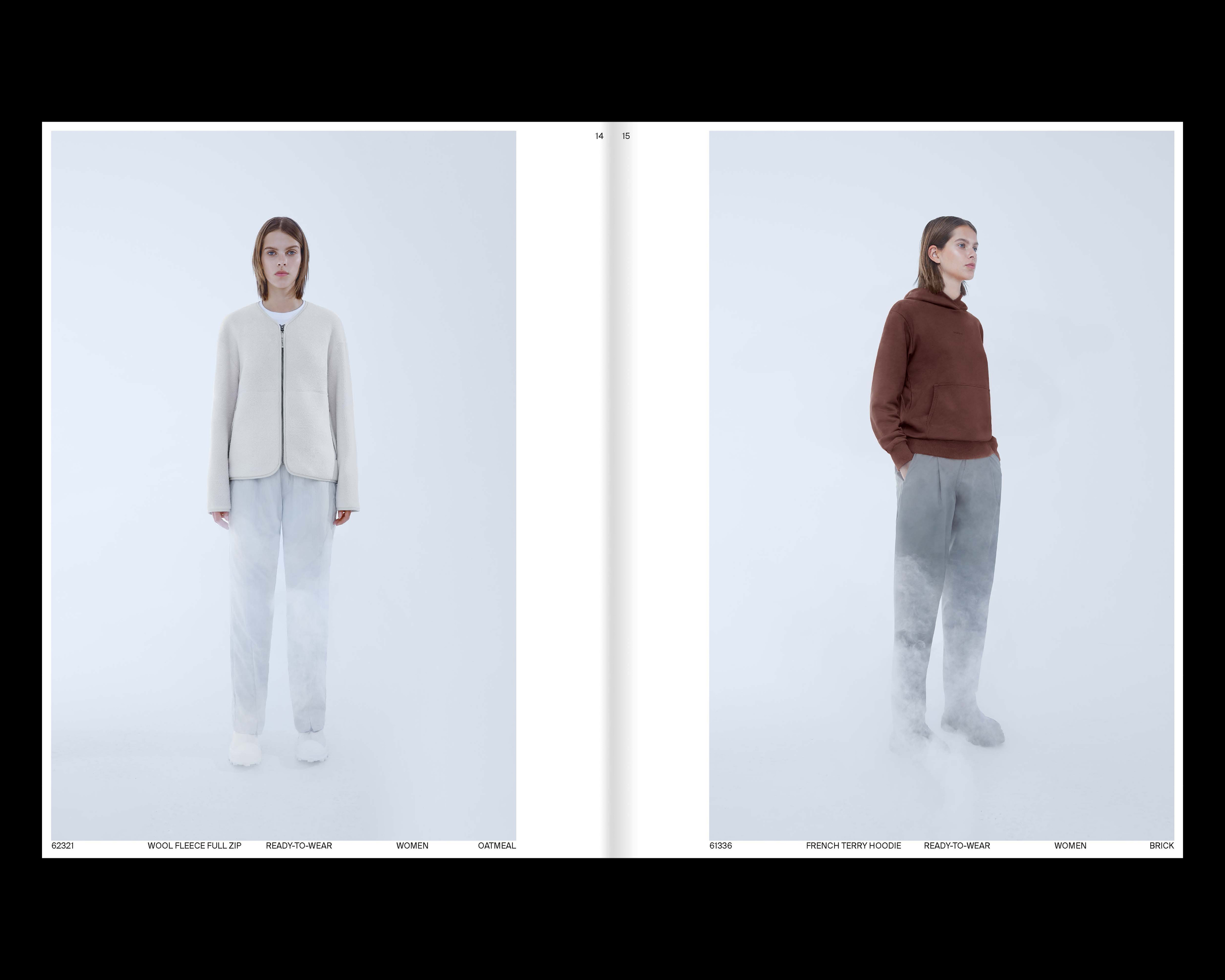 Selected spreads and images from the 'Lookbook FW 2022'. This season, Quartz Co. created a line of streamlined yet highly-functional outdoor garments that bridge the gap between urban aesthetics and technical performance.
